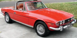 Stag 1975, rouge, hard-top, carte auto-sécurité verte (50 ans), freins complètement révisés, bon état général. Bien entretenue et tourne comme une horloge. Voiture connue au TSSCB